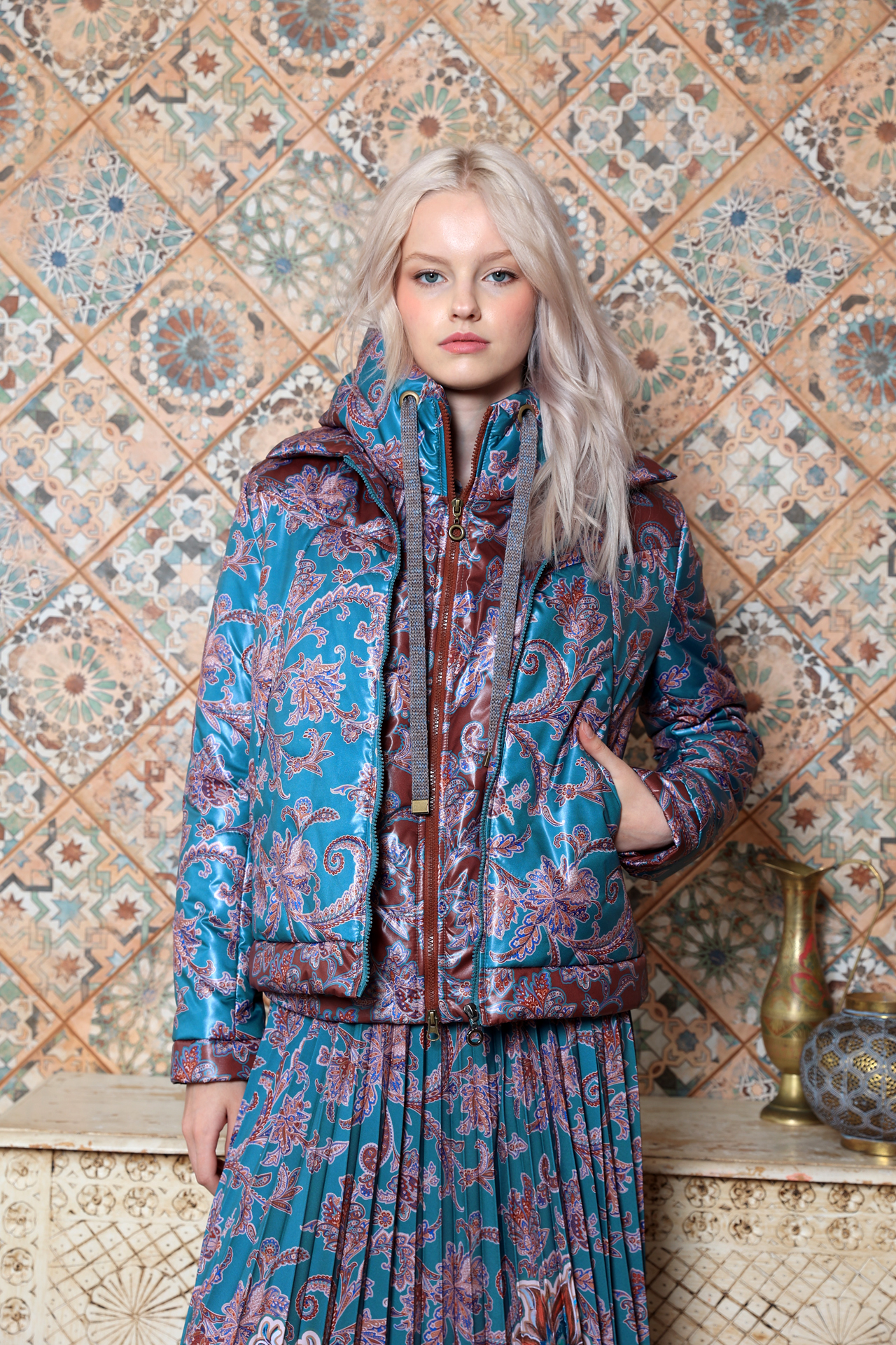 | Дополнительные характеристики | Обратите внимание! Жилет под курткой - вариант стилизации и дополнительного утепления. В комплекте не идет. |